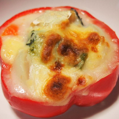 真ん中、緑が少し見えてます、ブロッコリーが焼いたチーズの中に隠れているんですよ♫
